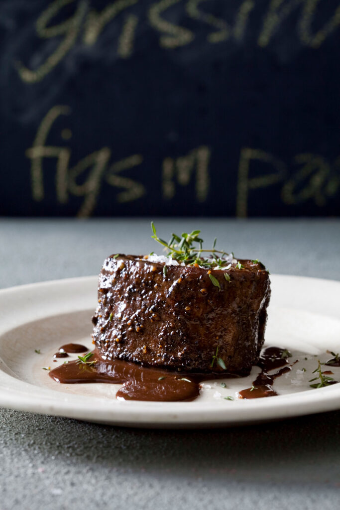 - Servera på uppvärmda tallrikar, ringlad med chilichokladsås och garnerad med färsk timjan och en nypa salt.