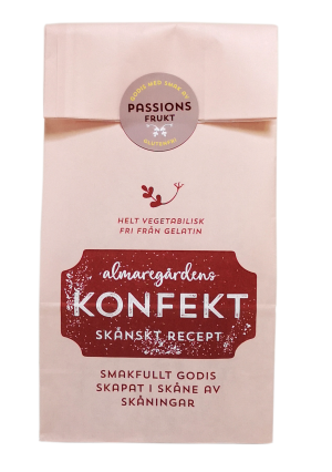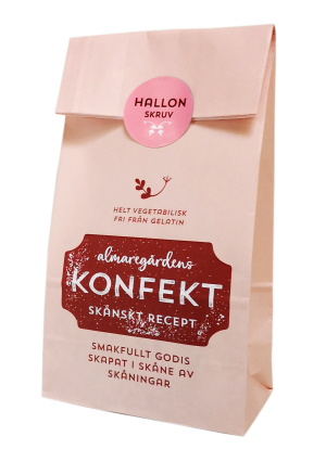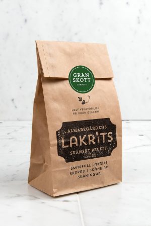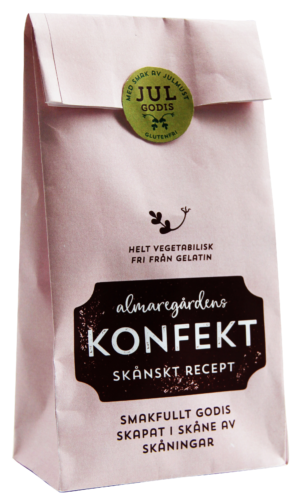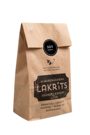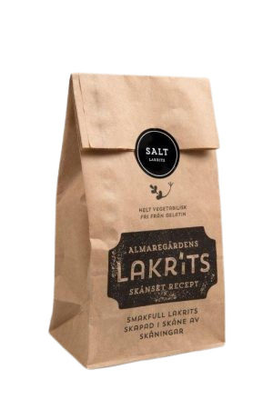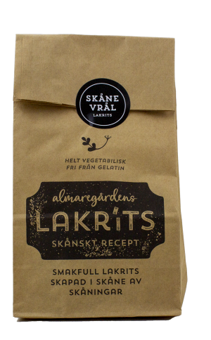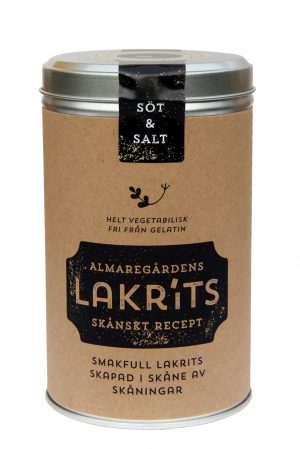 Lakrits gjord av naturliga råvaror och smaksatt med iransk lakritsrot, som anses vara den bästa i världen. Almaregårdens lakrits är fri från gelatin och helt vegetabilisk/vegansk. Produkterna är tillverkade av naturliga råvaror utan E-nummer. Tillverkningen sker efter Almaregårdens egna recept i en liten godisfabrik på Söderslätt i Skåne. En omåttligt populär produktserie. Smakfull lakrits, skapad i Skåne, av skåningar…..