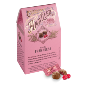 Presentask Chokladblommor ljus choklad med hallonfyllning