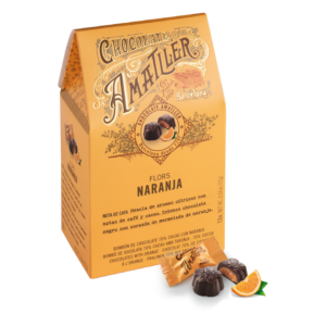 Presentask Chokladblommor mörk choklad med apelsinfyllning