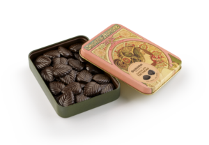 Plåtask Chokladblommor mörk 70% choklad med apelsinfyllning