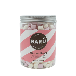 Barú är ett belgiskt konfektvarumärke med känsla av det roliga och magi. Alla partier produceras förhand, i små mängder, med premiumingredienser och med belgisk expertis. Produkterna är fulla av smak och kreativitet. Hos Barú blandas en djup aromatisk kakao med små mörka belgiska chokladfigurer, fluffiga marshmallows och chaikryddor. Samtliga produkter är dessutom naturligt fria från konserveringsmedel och färgämne. Smaken sätter också ett leende på läpparna.