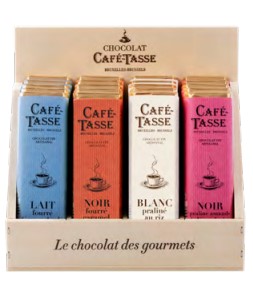 I chokladstaden Bryssel i Belgien ligger en av världens mest kända chokladproducent: Café Tasse. Café Tasse gör kvalitetschoklad i fin, unik design och med en autentisk smak. Sortimentet spänner över chokladkakor, praliner och mängder av fina presentaskar. Själva menar Café Tasse att livet bygger på choklad och att få arbeta med choklad är sin lyckans lott i livet.